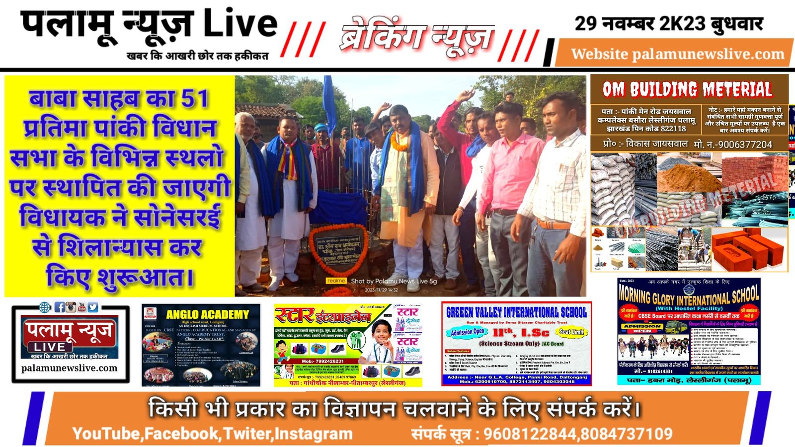 पलामू न्यूज Live//पलामू जिले के नीलाम्बर-पीताम्बरपुर प्रखंड अंतर्गत हरतुआ पंचायत के सोनेसरई गांव में संविधान निर्माता बाबा साहब डाॅक्टर भीमराव अम्बेडकर जी कि प्रतिमा स्थापित करने के लिए आधारशिला रखी गई। जिसका मुख्य अतिथि पांकी विधानसभा के भाजपा विधायक कुशवाहा डॉक्टर शशिभूषण मेहता ने प्रतिमा स्थापित स्थल पर बौद्ध धर्म के अनुसार पूजा अर्चना कर नारियल फोड़कर शीलापट्ट का अनावरण किया।