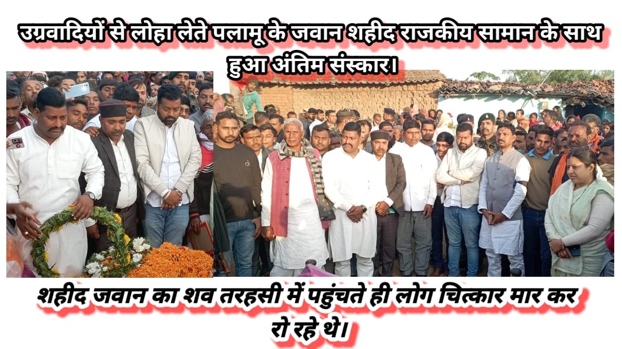 शहिद के पार्थिव शरीर दोपहर के बाद शाम करीब 4:30 बजे बालूमाथ पांकी मुख्य मार्ग से होते हुए सगालिम से तरहसी ओझा पतरा पहुंचा शव आने की सूचना पर बड़ी संख्या में लोग दोपहर से ही अंतिम दर्शन के लिए इंतजार कर रहे थे। तंबूद में लपेटे शव को लेकर पुलिस जैसे ही शहीद के घर पहुंचे लोग दहाड़ मार कर रोने लगे वहीं लोगों का हुजूर उमड़ पड़ा हर किसी की आंखें नम थी दरवाजे पर भी शव को अंतिम सलामी दी गई। पलामू के शहीद जवान के अंतिम संस्कार में CRPF के डीआईजी पंकज कुमार, लेस्लीगंज के एसडीपीओ आलोक कुमार टूटी, तरहसी के थाना प्रभारी जय प्रकाश पासवान, लेस्लीगंज थाना प्रभारी बिट्टू कुमार, पांकी थाना प्रभारी उपेंद्र नारायण सिंह ने पुष्प चक्र शव पर रखा और सलामी दी।