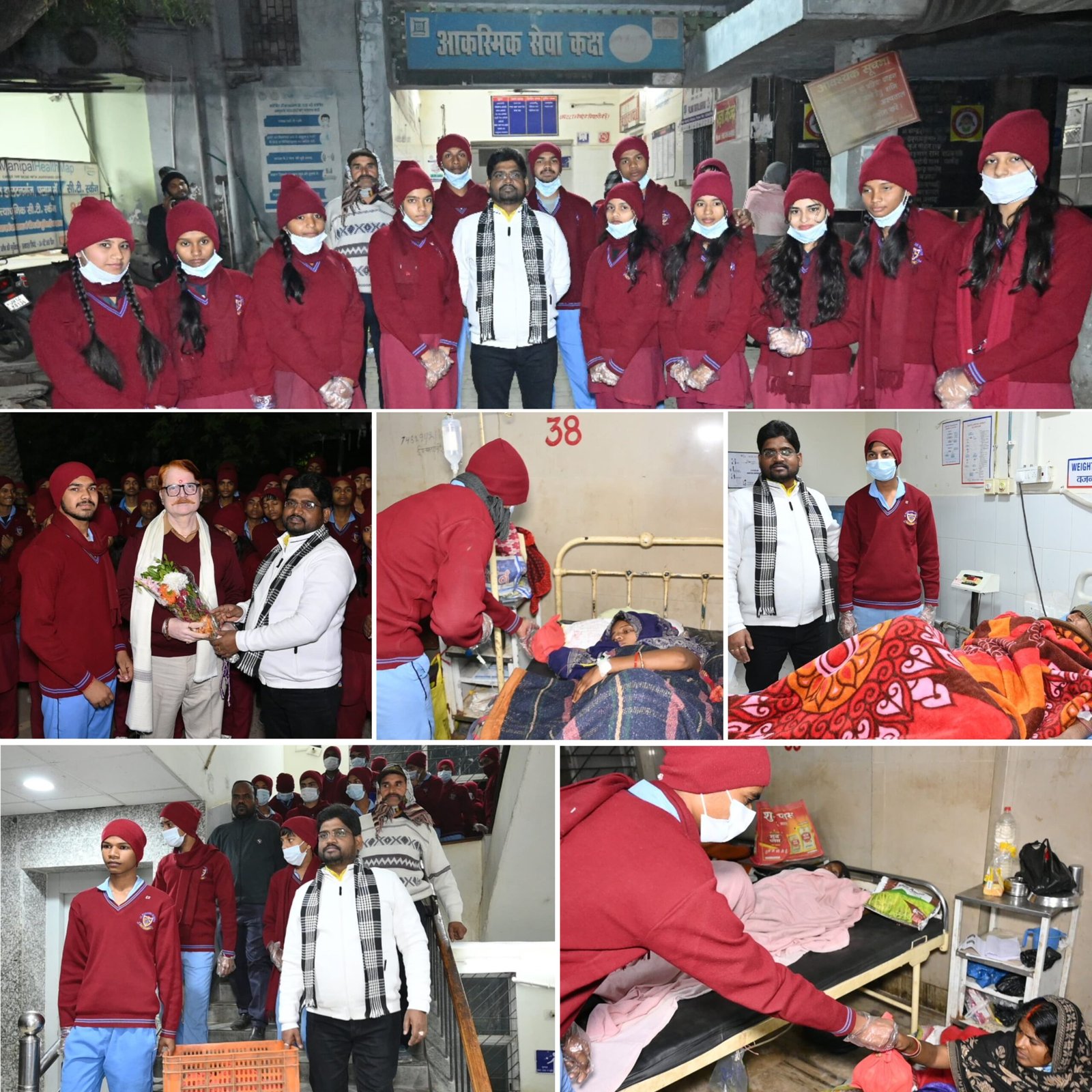 बच्चों को अस्पताल कर्मियों की मदद से हर वार्ड के मरीजों से मिलवाया गया नए साल के तोहफा के रूप में बच्चों ने मरीजों को फल प्रदान किए। बच्चे संसाधन विहीन मरीज एवं अस्पताल के व्यवस्था रहन सहन से अवगत हुए नए साल में नया अनुभव लिए।