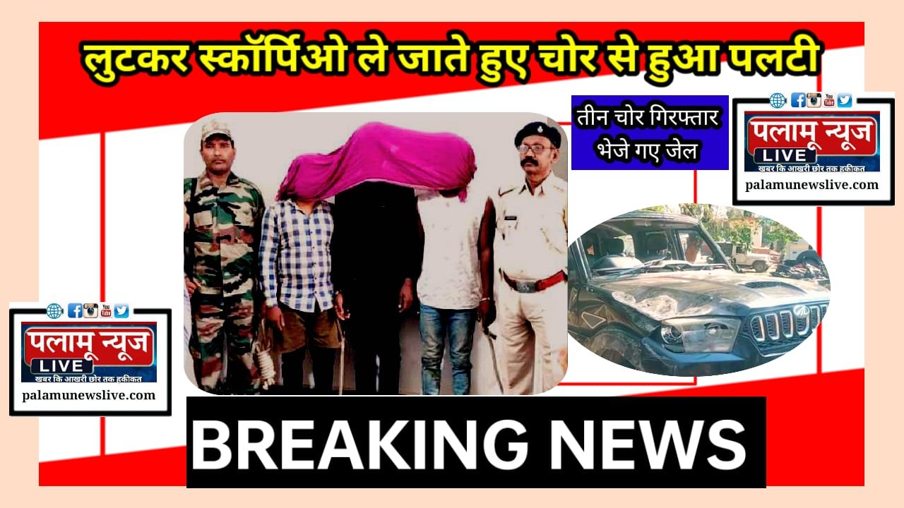 पलामू में स्कॉर्पियो लूटने वाले तीन लुटेरे को पुलिस ने किया गिरफ्तार, एक फरार।