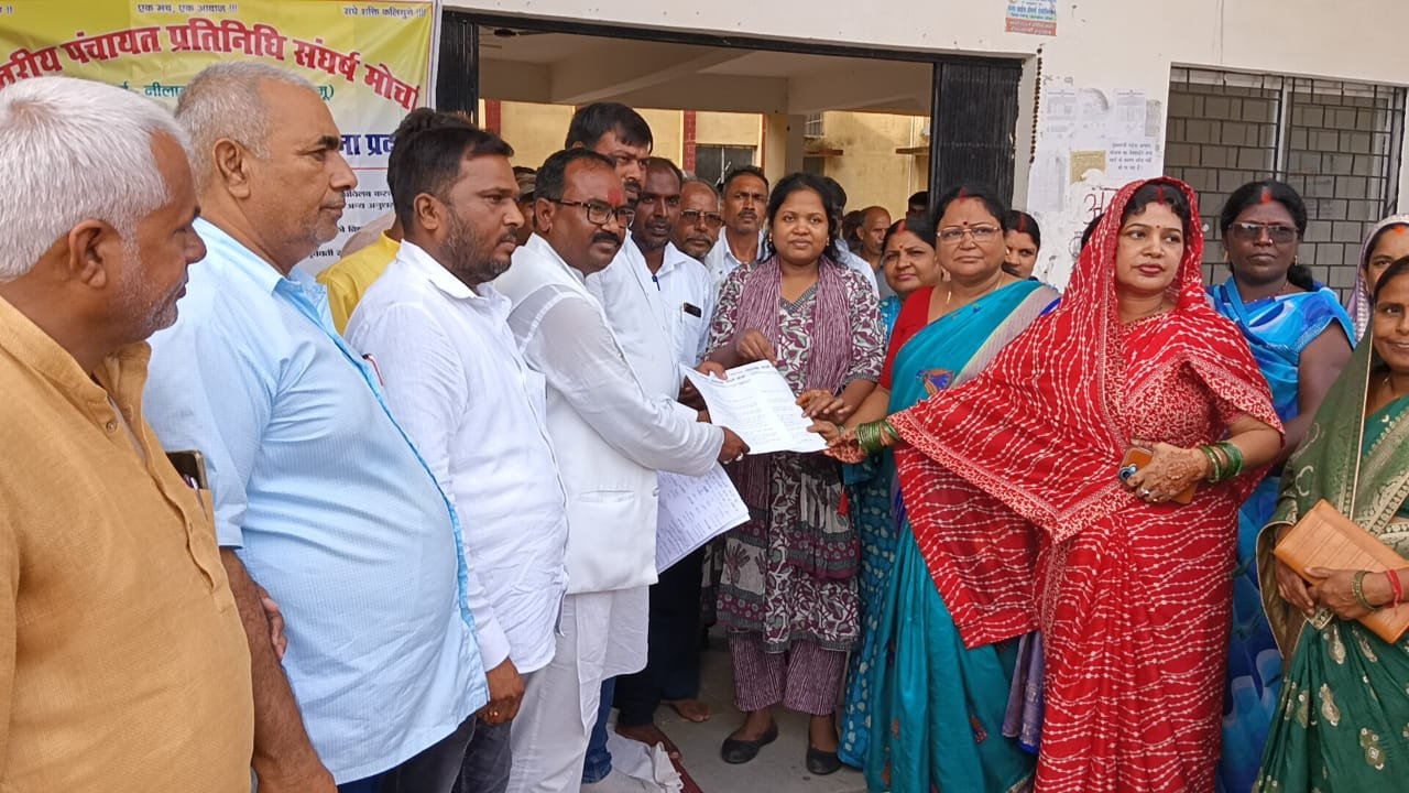 राज्यपाल के नाम प्रखंड विकास पदाधिकारी को त्रिस्तरीय जनप्रतिनिधियों ने सौंपा ज्ञापन।
