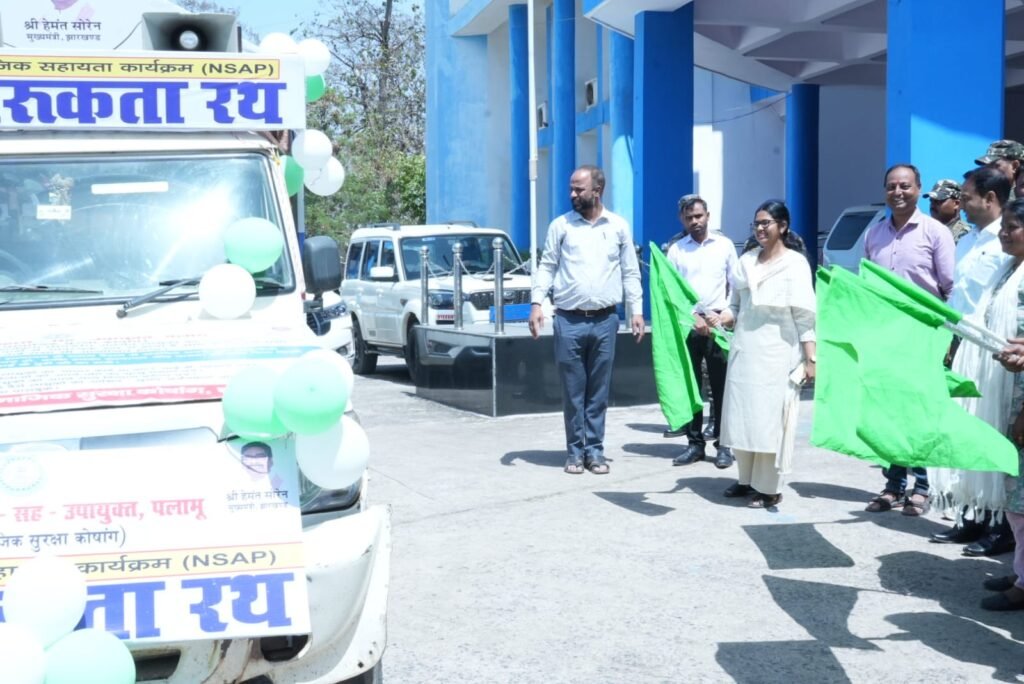 पलामू न्यूज Live//मेदिनीनगर: जिले में केंद्र प्रायोजित पेंशन योजनाओं के सामाजिक अंकेक्षण के व्यापक प्रचार-प्रसार हेतु शनिवार को उपायुक्त सह जिला दंडाधिकारी समीरा एस द्वारा समाहरणालय परिसर से जागरूकता रथ को हरी झंडी दिखाकर रवाना किया गया। यह जागरूकता रथ जिले के विभिन्न प्रखंडों, पंचायतों एवं गांवों में भ्रमण कर लोगों को राष्ट्रीय सामाजिक सहायता कार्यक्रम (NSAP) अंतर्गत संचालित पेंशन योजनाओं, इंदिरा गांधी वृद्धावस्था पेंशन योजना, इंदिरा गांधी विधवा पेंशन योजना, इंदिरा गांधी दिव्यांग पेंशन योजना एवं राष्ट्रीय परिवार हित लाभ योजना के सामाजिक अंकेक्षण के बारे में जागरूक करेगा।